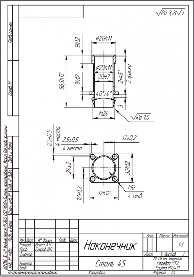 Для студентов МГТУ им. Н.Э.Баумана по предмету Основы проектирования режущего инструмента (ОПРИ)Курсовая работа по ФОПР и РИ - НаконечникКурсовая работа по ФОПР и РИ - Наконечник