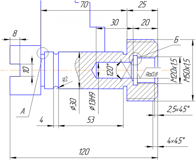 Выполнить расчет конструктивных и геометрических параметров спирального сверла для обработки отверстия диаметром 13мм глубиной 50 мм . Материал детали: Сталь 45, твердость 205 НВ.