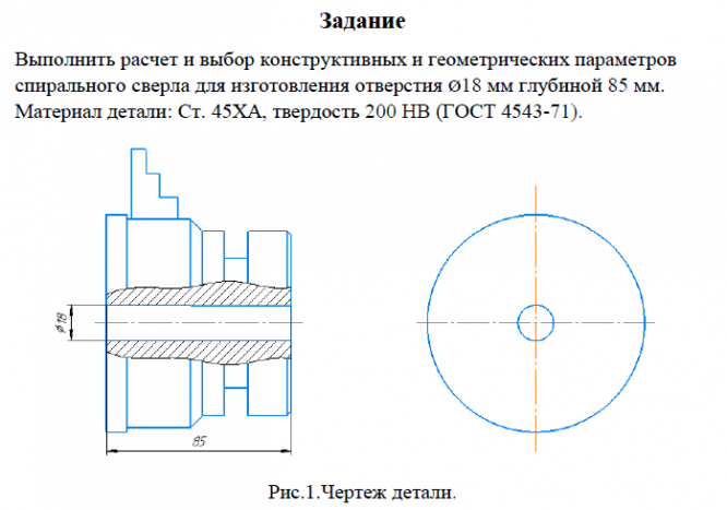 Домашнее задание №1 "Расчет конструктивных и геометрических параметров спирального сверла" (деталь Сталь 45ХА, твердость 200 HB)