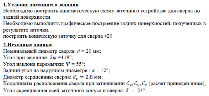 Главная » Учебные материалы » Основы проектирования режущего инструмента (ОПРИ) » Домашние задания » МГТУ им. Н.Э.Баумана » 8 семестр » Домашнее задание №2 "Анализ изменения заднего угла сверла" (диаметр сверла 20 мм)