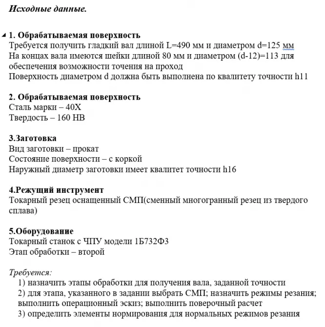ДЗ: ДЗ1, Вариант 1, Тема: «Назначение режимов резания для операции точения»