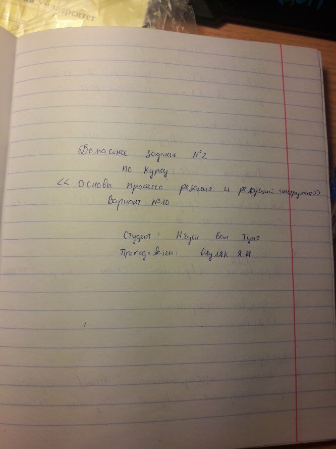 ДЗ 2: Назначение режимов резания для операции сверления вариант 10