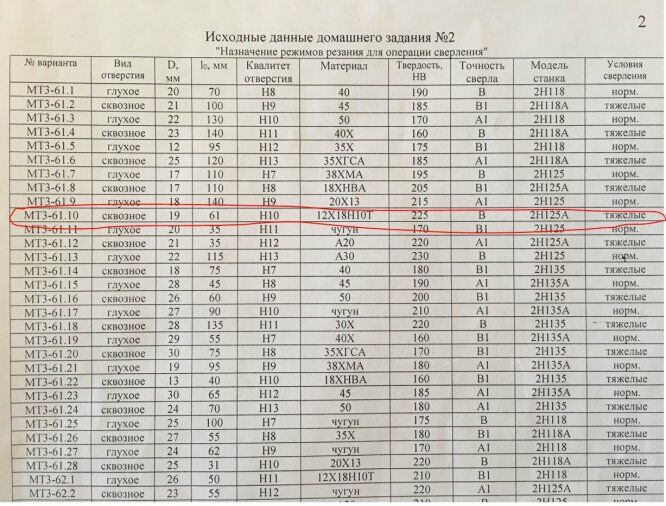 ДЗ №2 (вариант 10) - Назначение параметров режима резания для операции сверления спиральными сверлами