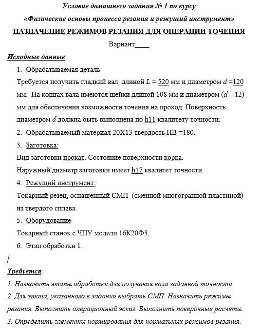 2. Для этапа, указанного в задании выбрать СМП. Назначить режимы резания. Выполнить операционный эскиз. Выполнить поверочные расчеты.