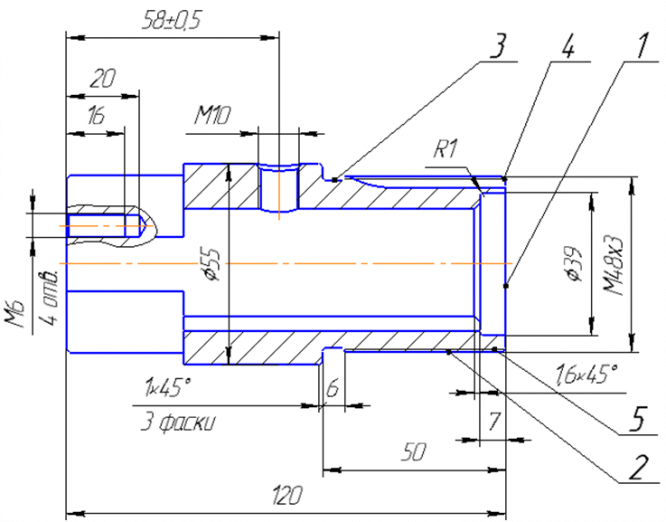 - Заготовка: пруток горячекатаный круглый с номинальным диаметром 65 мм и длинной 125 мм;