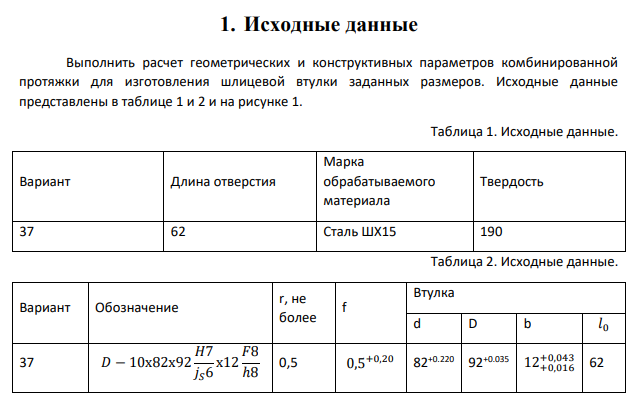 - Задание: Выполнить расчет геометрических и конструктивных параметров комбинированной протяжки для изготовления шлицевой втулки заданных размеров (см. фото).