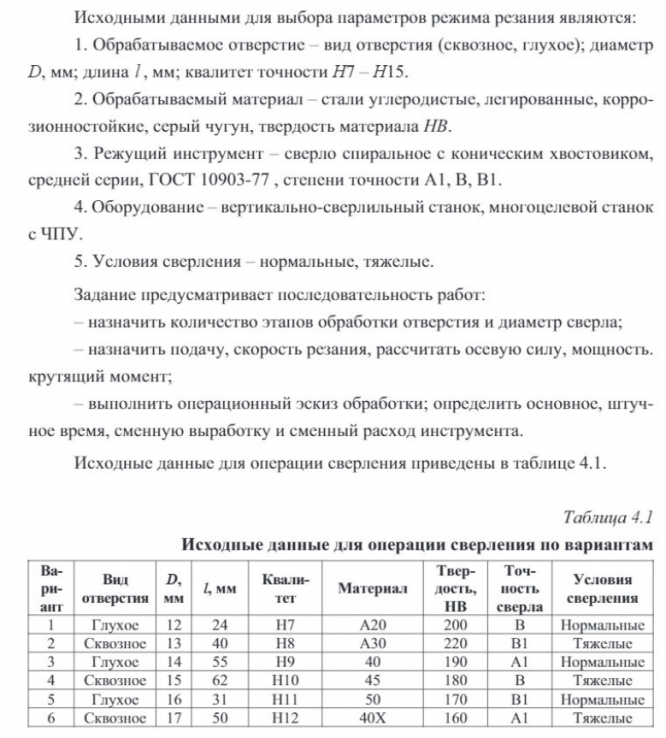 ДЗ 2: Параметры режима резания для операций сверления спиральными сверлами вариант 4
