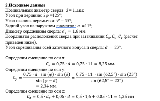 Для студентов МГТУ им. Н.Э.Баумана по предмету Основы проектирования режущего инструмента (ОПРИ)Расчет конструктивных и геометрических параметров спирального сверла; Графическое построение конической заточки (отверстие 20 мм. длиной 30мм., материРасчет конструктивных и геометрических параметров спирального сверла; Графическое построение конической заточки (отверстие 20 мм. длиной 30мм., матери