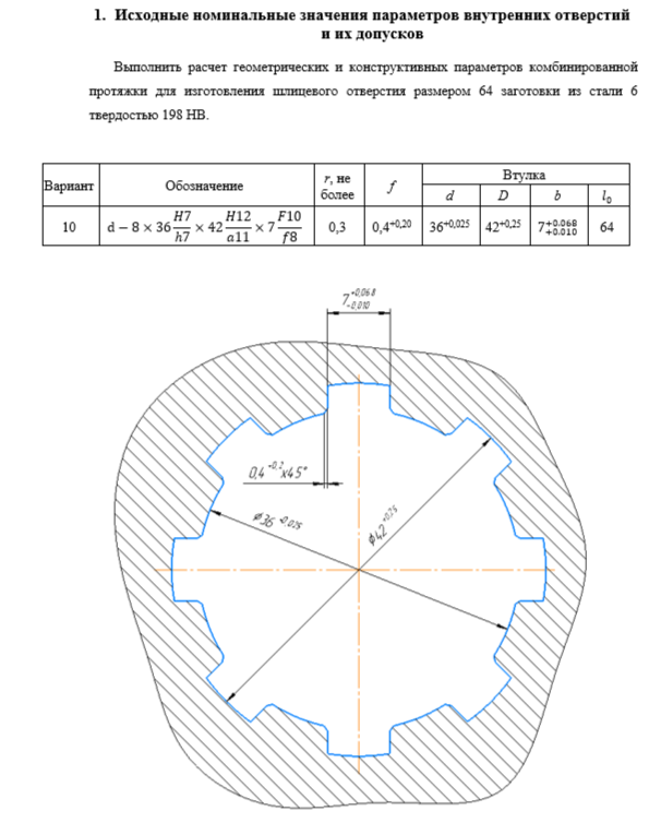 ДЗ 2: Расчёт комбинированных шлицевых протяжек вариант 10