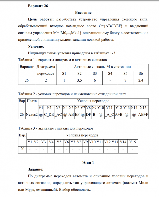 ДЗ: Проектирование устройств управления с жесткой логикой вариант 26