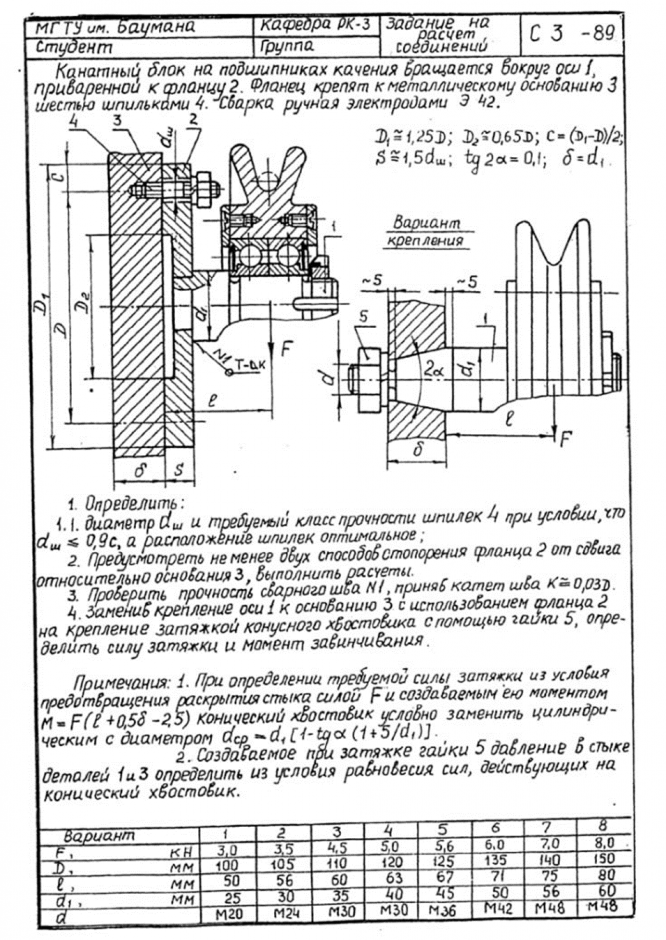 Для студентов МГТУ им. Н.Э.Баумана по предмету Основы проектно-конструкторской деятельности (ОПКД)Задание на расчет соединенийЗадание на расчет соединений