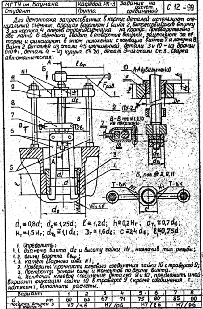 Для студентов МГТУ им. Н.Э.Баумана по предмету Основы проектно-конструкторской деятельности (ОПКД)Расчет соединения С 12-99Расчет соединения С 12-99