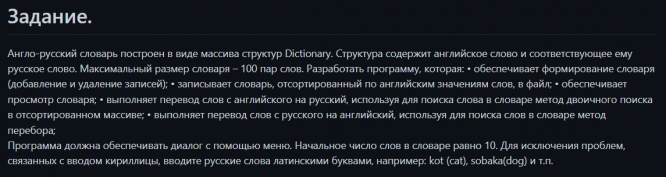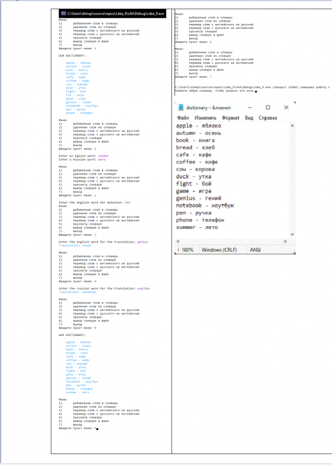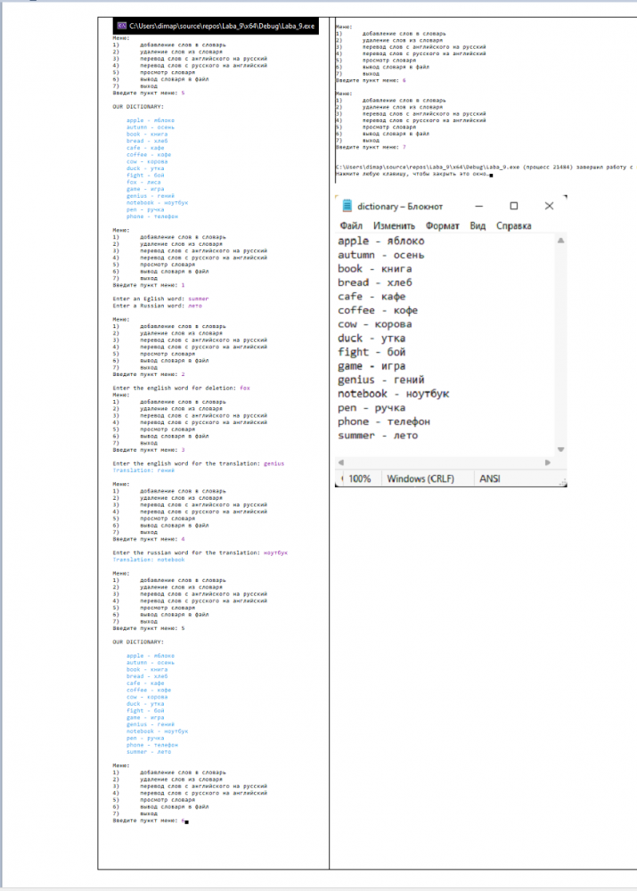 Для студентов МГТУ им. Н.Э.Баумана по предмету Основы программирования на C++Лабораторная работу #9, ИУ5, СловарьЛабораторная работу #9, ИУ5, Словарь
