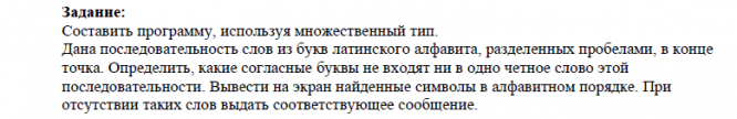 Для студентов МГТУ им. Н.Э.Баумана по предмету Основы программированияДомашнее задание №2 "Часть 3. Применение множеств" (вариант №7)Домашнее задание №2 "Часть 3. Применение множеств" (вариант №7)