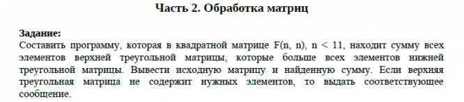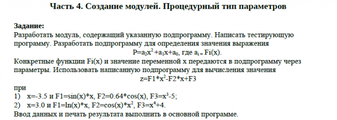 Главная » Учебные материалы » Основы программирования » Домашние задания » МГТУ им. Н.Э.Баумана » 1 семестр » Домашнее задание №2 "Обработка одномерных массивов. Обработка матриц. Применение множеств. Создание модулей. Процедурный тип параметров" (вариант №5)