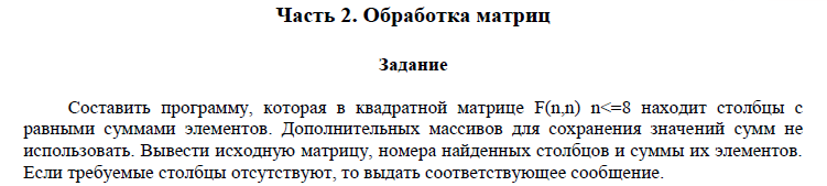 Главная » Учебные материалы » Основы программирования » Домашние задания » МГТУ им. Н.Э.Баумана » 1 семестр » Домашнее задание №2 "Обработка одномерных массивов. Обработка матриц. Применение множеств. Создание модулей. Процедурный тип параметров" (вариант №7)