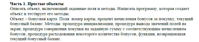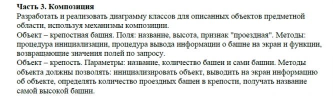 Главная » Учебные материалы » Основы программирования » Домашние задания » МГТУ им. Н.Э.Баумана » 1 семестр » Домашнее задание №3 "Простые объекты. Наследование. Композиция" (вариант №18)