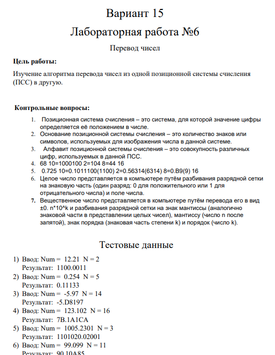 Перевод чисел Цель работы: Изучение алгоритма перевода чисел из одной позиционной системы счисления (ПСС) в другую.