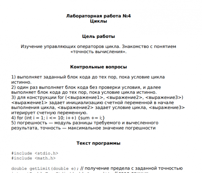 Для студентов МГТУ им. Н.Э.Баумана по предмету Основы программированияЛабораторная работа №4 (Циклы)Лабораторная работа №4 (Циклы)