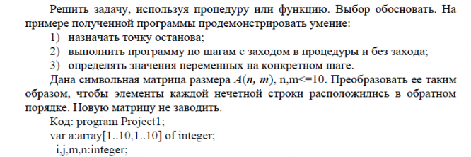 Главная » Учебные материалы » Основы программирования » Лабораторные работы » МГТУ им. Н.Э.Баумана » 1 семестр » Номер 7 » Вариант 9 » Отчет по лабораторной работе №7 "Подпрограммы. Средства отладки Delphi" (вариант №9)
