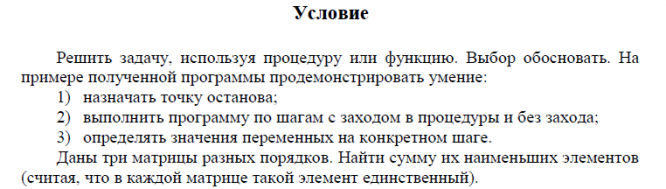 Главная » Учебные материалы » Основы программирования » Лабораторные работы » МГТУ им. Н.Э.Баумана » 1 семестр » Номер 7 » Вариант 11 » Отчет по лабораторной работе №7 "Подпрограммы. Средства отладки Delphi" (вариант №11)