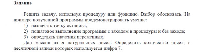 Главная » Учебные материалы » Основы программирования » Лабораторные работы » МГТУ им. Н.Э.Баумана » 1 семестр » Номер 7 » Вариант 16 » Отчет по лабораторной работе №7 "Подпрограммы. Средства отладки Delphi" (вариант №16)