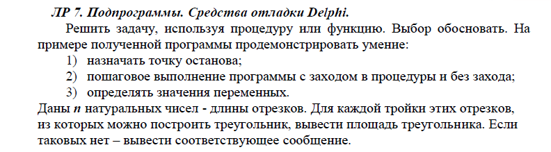 Лабораторная работа 7: Отчет по лабораторной работе №7 "Подпрограммы. Средства отладки Delphi" (вариант №18) вариант 18