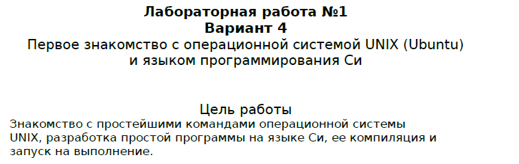 Отчет по лабораторной работе №1 "Первое знакомство с операционной системой UNIX (Ubuntu) и языком программирования Си" (вариант №4)