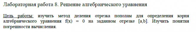 Главная » Учебные материалы » Основы программирования » Лабораторные работы » МГТУ им. Н.Э.Баумана » 1 семестр » Номер 8 » Вариант 3 » Отчет по лабораторной работе №8 "Решение алгебраического уравнения" (вариант №3)
