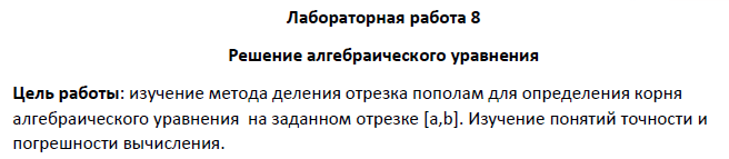 Главная » Учебные материалы » Основы программирования » Лабораторные работы » МГТУ им. Н.Э.Баумана » 1 семестр » Номер 8 » Вариант 7 » Отчет по лабораторной работе №8 "Решение алгебраического уравнения" (вариант №7)