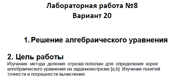 Лабораторная работа 8: Отчет по лабораторной работе «Решение алгебраического уравнения» вариант 20