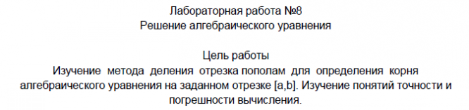 Главная » Учебные материалы » Основы программирования » Лабораторные работы » МГТУ им. Н.Э.Баумана » 1 семестр » Номер 8 » Вариант 21 » Отчет по лабораторной работе №8 "Решение алгебраического уравнения" (вариант №21)