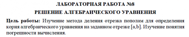 Главная » Учебные материалы » Основы программирования » Лабораторные работы » МГТУ им. Н.Э.Баумана » 1 семестр » Номер 8 » Вариант 22 » Отчет по лабораторной работе №8 "Решение алгебраического уравнения" (вариант №22)