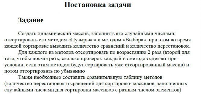 Лабораторная работа 4: Отчет по лабораторной работе №4 "Сортировка одномерного массива"