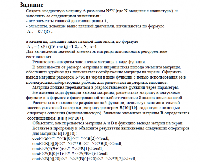 Главная » Учебные материалы » Основы программирования » Лабораторные работы » МГТУ им. Н.Э.Баумана » 1 семестр » Номер 8 » Отчет по лабораторной работе №8 "Обработка и печать числовой матрицы"