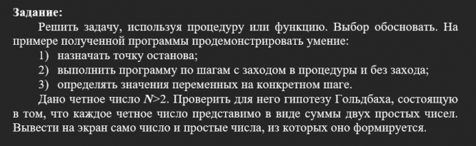 Главная » Учебные материалы » Основы программирования » Лабораторные работы » МГТУ им. Н.Э.Баумана » 1 семестр » Номер 7 » Вариант 2 » Лабораторная работа № 7 "Подпрограммы. Средства отладки Lazarus." Вариант 2.