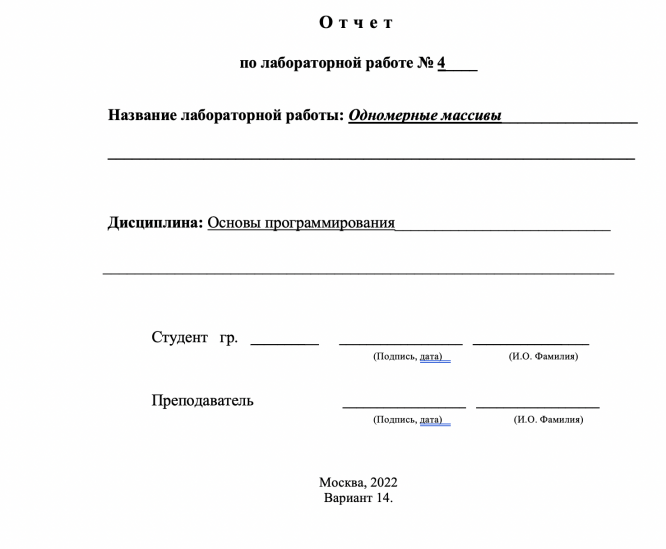 Лабораторная работа 4: Одномерные массивы вариант 14