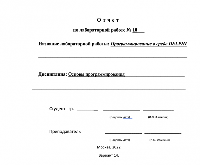 Лабораторная работа 10: Программирование в среде DELPHI вариант 14