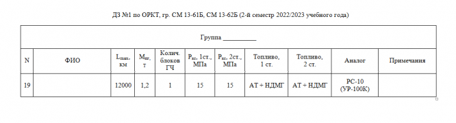 ДЗ 1, 2: "Проектирование двухступенчатой МБР с ЖРД" вариант 19