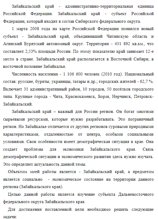 Реферат: Социально-экономическая характеристика субъекта Дальневосточного федерального округа (Забайкальский край) вариант 27