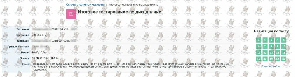 Услуга: Итоговое тестирование Основы спортивной медицины