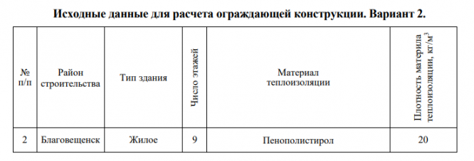 Задание на комплексный теплотехнический расчет ограждающей конструкции