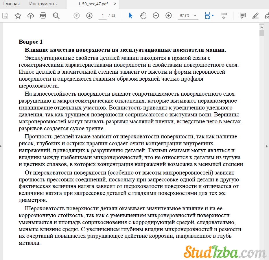 Влияние качества поверхности на эксплуатационные показатели машин.