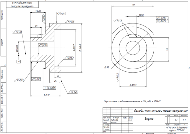 Для студентов МГТУ им. Н.Э.Баумана по предмету Основы технологии машиностроенияДз техмаш "Разработка маршрутного технологического процесса изготовления втулки"Дз техмаш "Разработка маршрутного технологического процесса изготовления втулки"