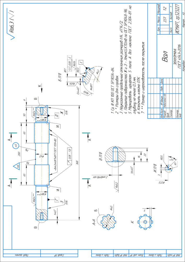 - Начертить деталь, проставить размеры и указать требования к точности размеров и качеству поверхности. Определить тип детали (втулка, валик, крышка, фланец и т.д.), описать ее конструктивные элементы. Описать материал детали (химический состав и механические свойства). Определить тип производства.