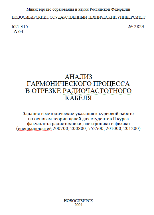 Главная » Учебные материалы » Основы теории цепей (ОТЦ) » Книги » НГТУ » 4 семестр » Афанасьев В.В. - Анализ гармонического процесса в отрезке радиочастотного кабеля