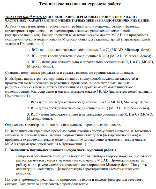 Для студентов МГТУ им. Н.Э.Баумана по предмету Основы теории цепей (ОТЦ)Исследование переходных процессов и анализ частотных характеристик элементарных звеньев радиотехнических цепей Вариант 2Исследование переходных процессов и анализ частотных характеристик элементарных звеньев радиотехнических цепей Вариант 2