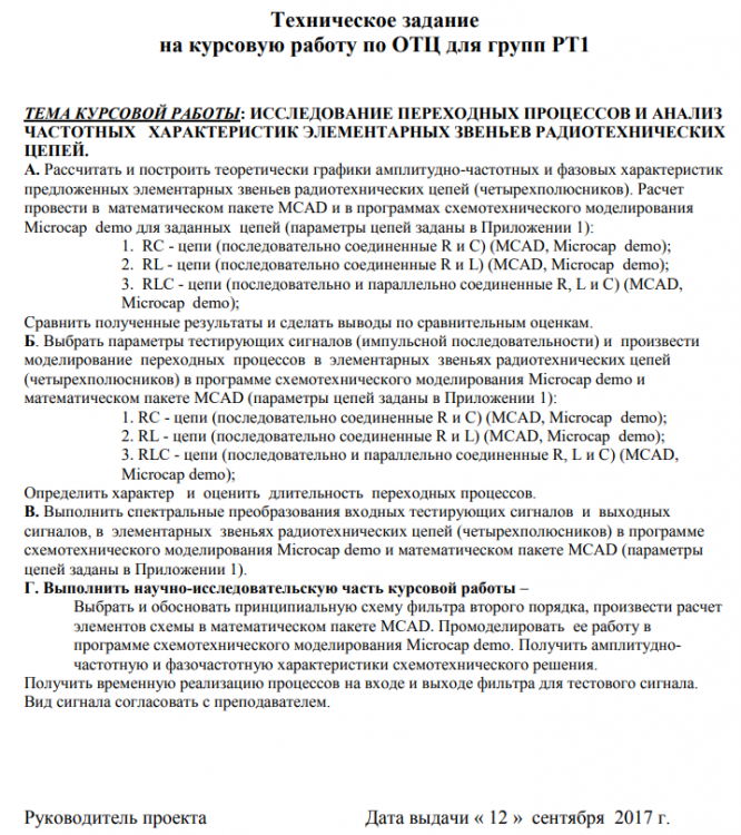 Для студентов МГТУ им. Н.Э.Баумана по предмету Основы теории цепей (ОТЦ)Исследование переходных процессов и анализ частотных характеристик элементарных звеньев радиотехнических цепей Вариант №3Исследование переходных процессов и анализ частотных характеристик элементарных звеньев радиотехнических цепей Вариант №3
