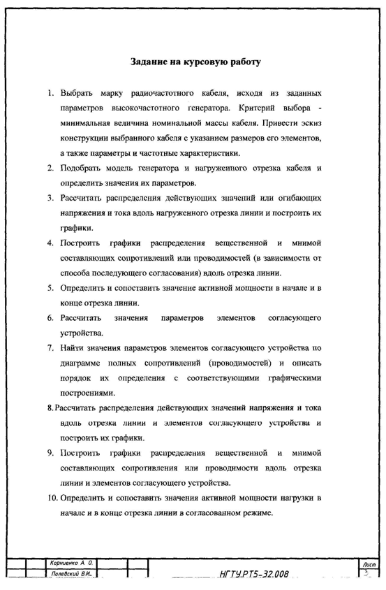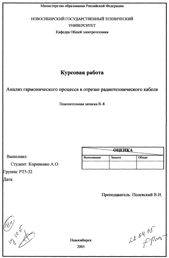 Для студентов НГТУ по предмету Основы теории цепей (ОТЦ)Вариант 8 - Группа 2 - КП - Анализ гармонического процесса в отрезке радиочастотного кабеляВариант 8 - Группа 2 - КП - Анализ гармонического процесса в отрезке радиочастотного кабеля