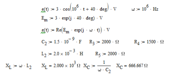 Задание- Найти переходный ток на входе цепи второго порядка, изображенной на схеме, и построить график его изменения в функции времени. ЭДС источника задана в виде: e(t)=Emcos(106t+Ye)